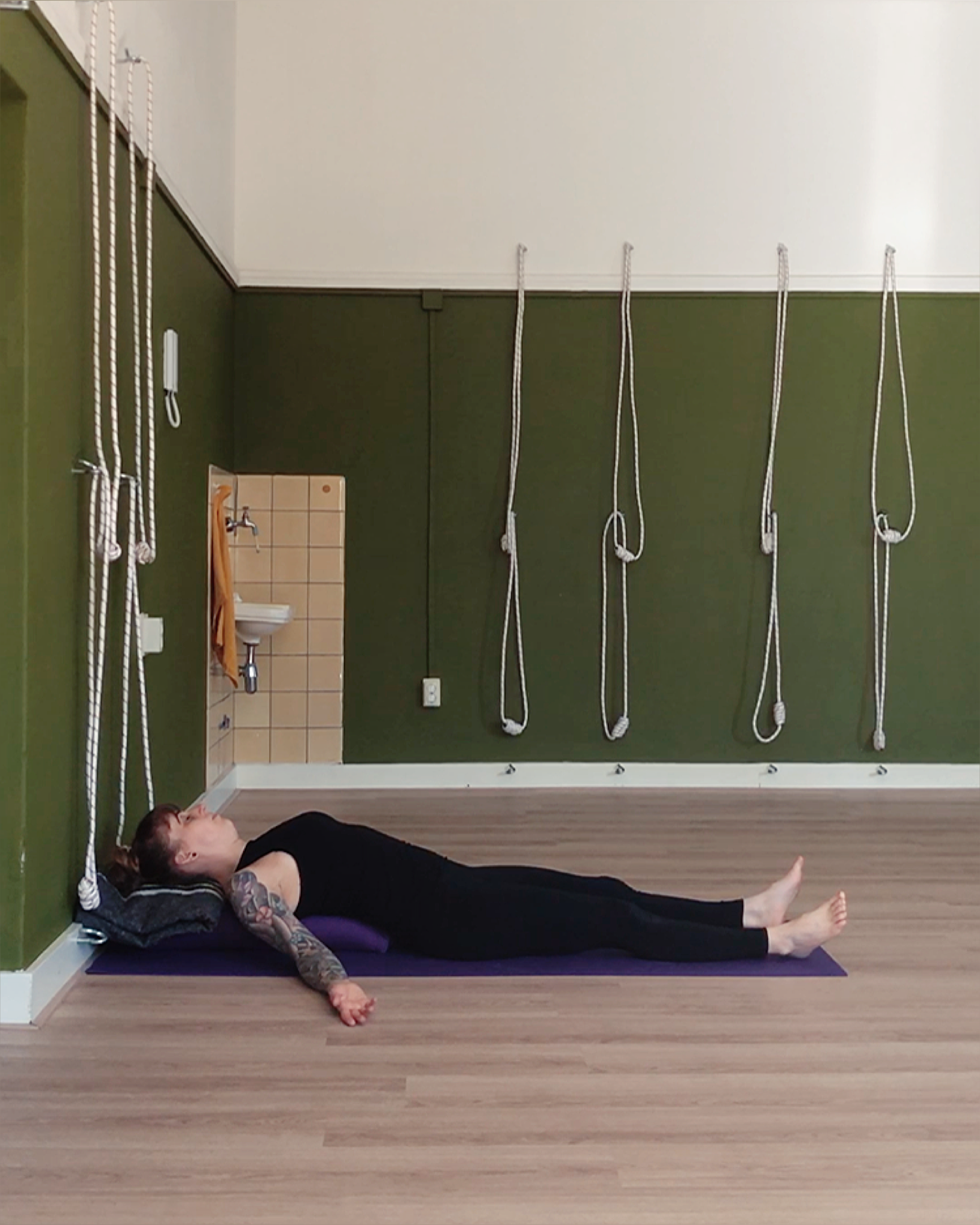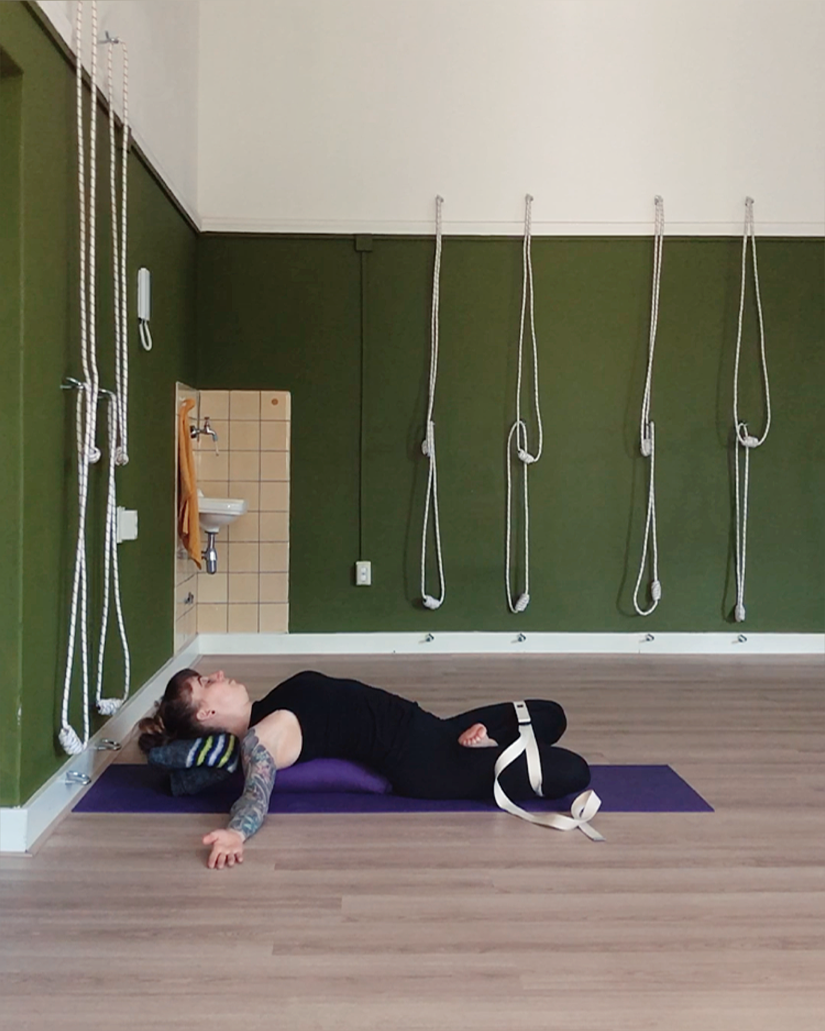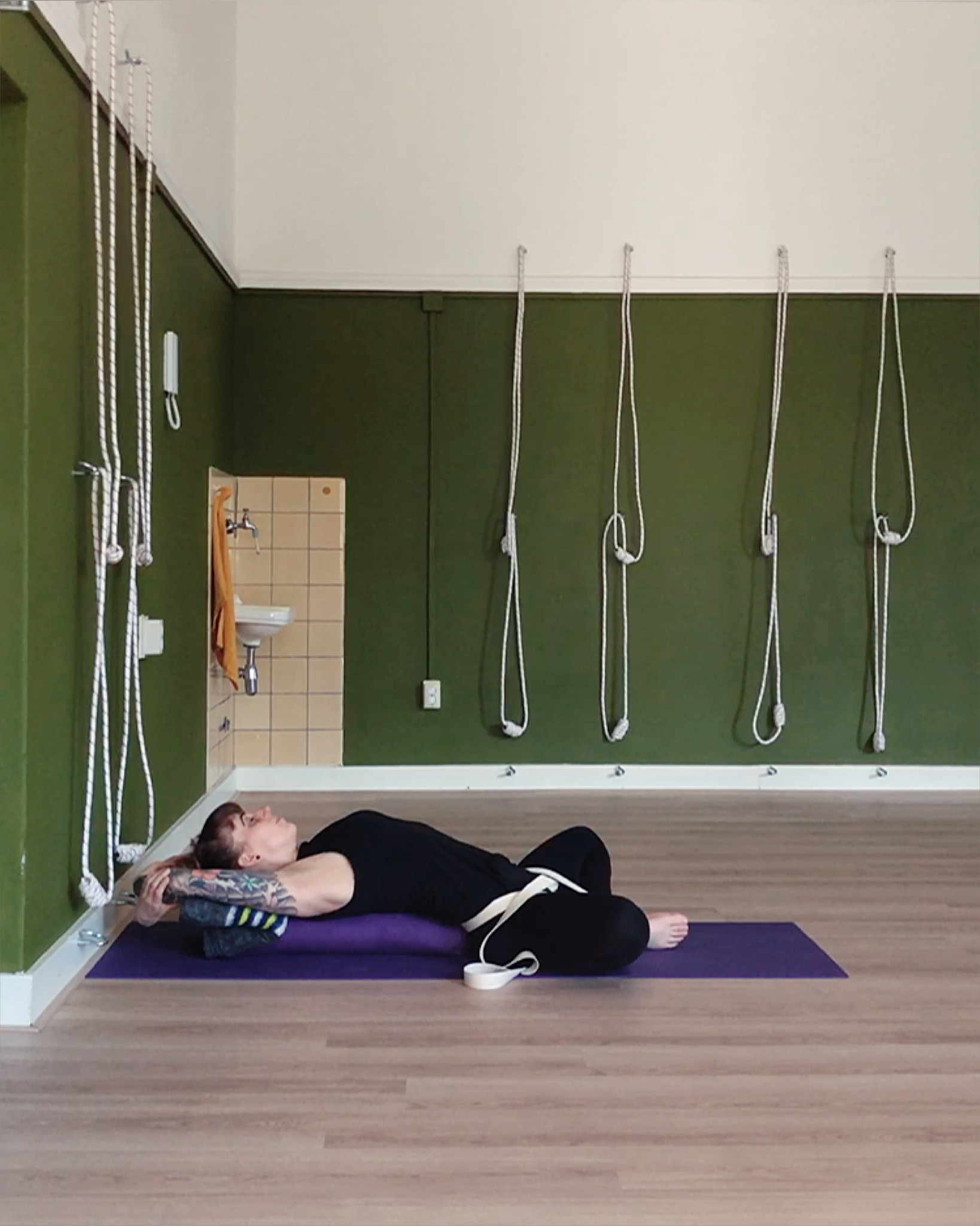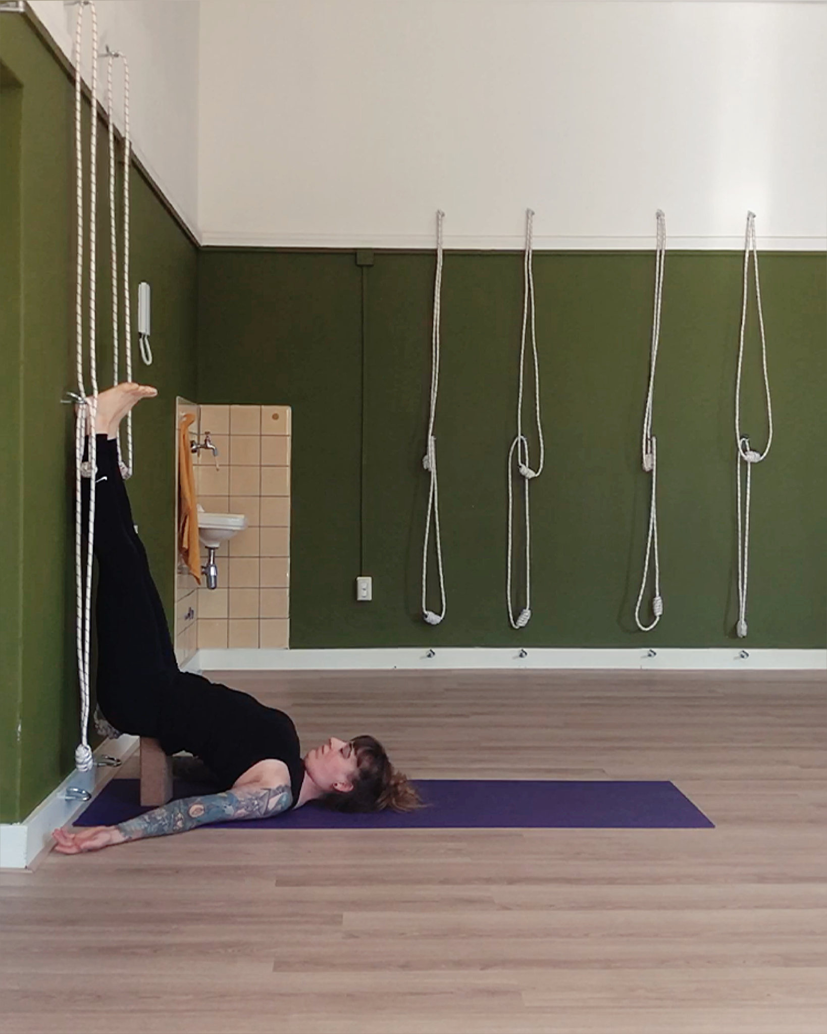 Foto waarop de houding : Bruggetje wordt gedaan voor een blogpost Klesha's van About Yoga Breda