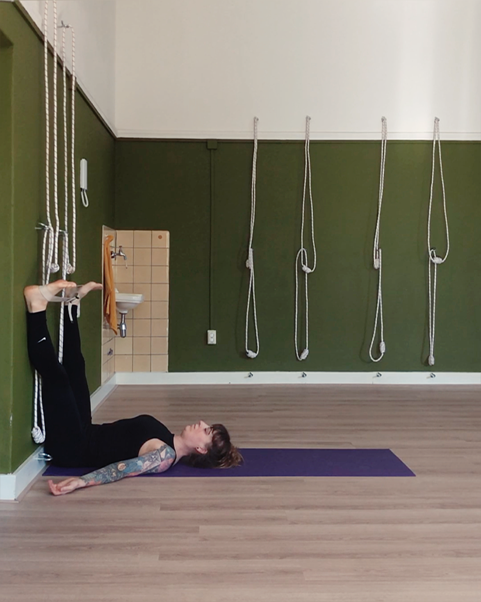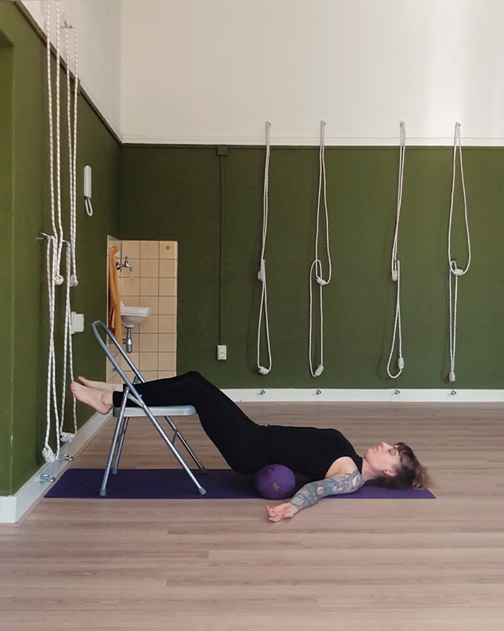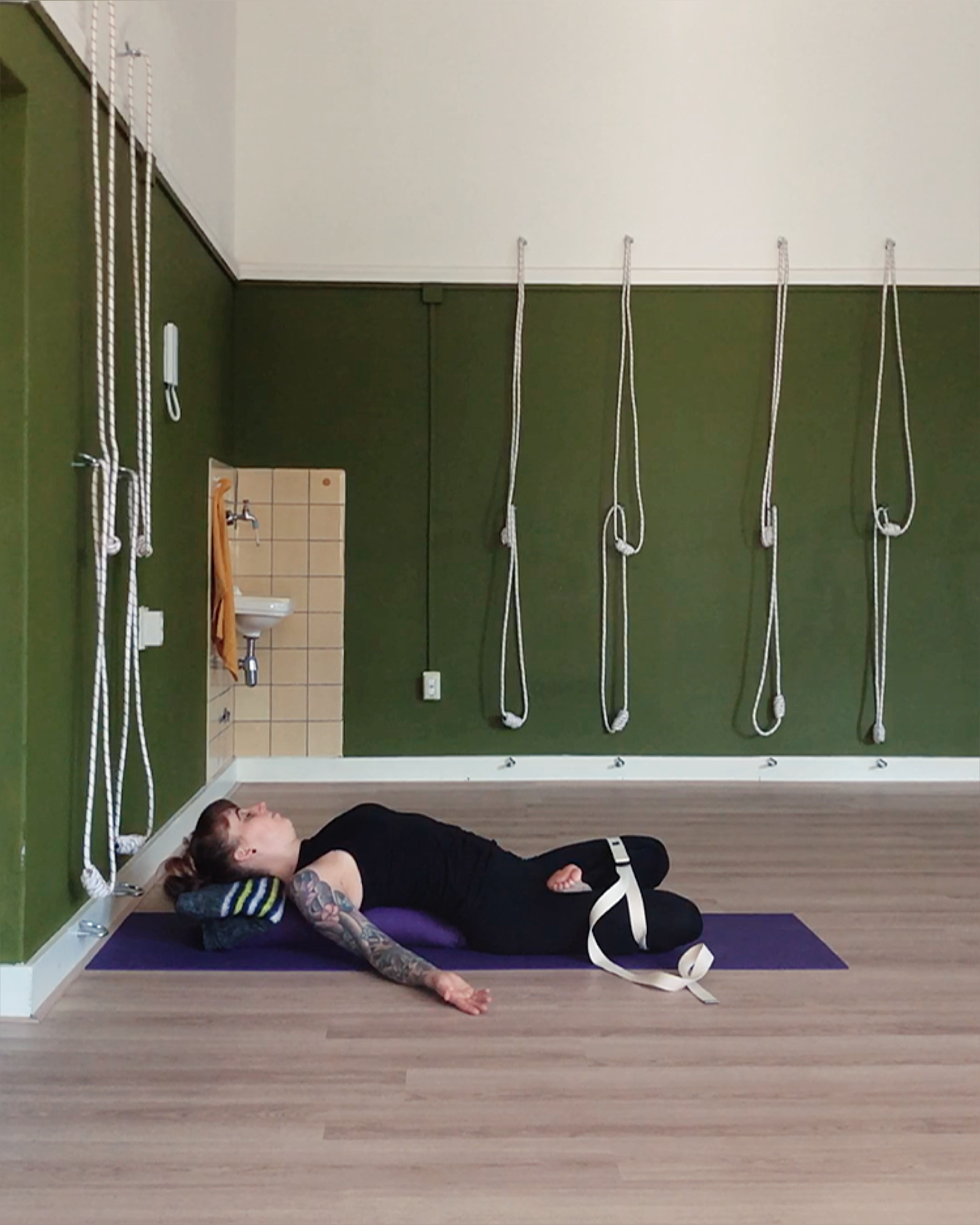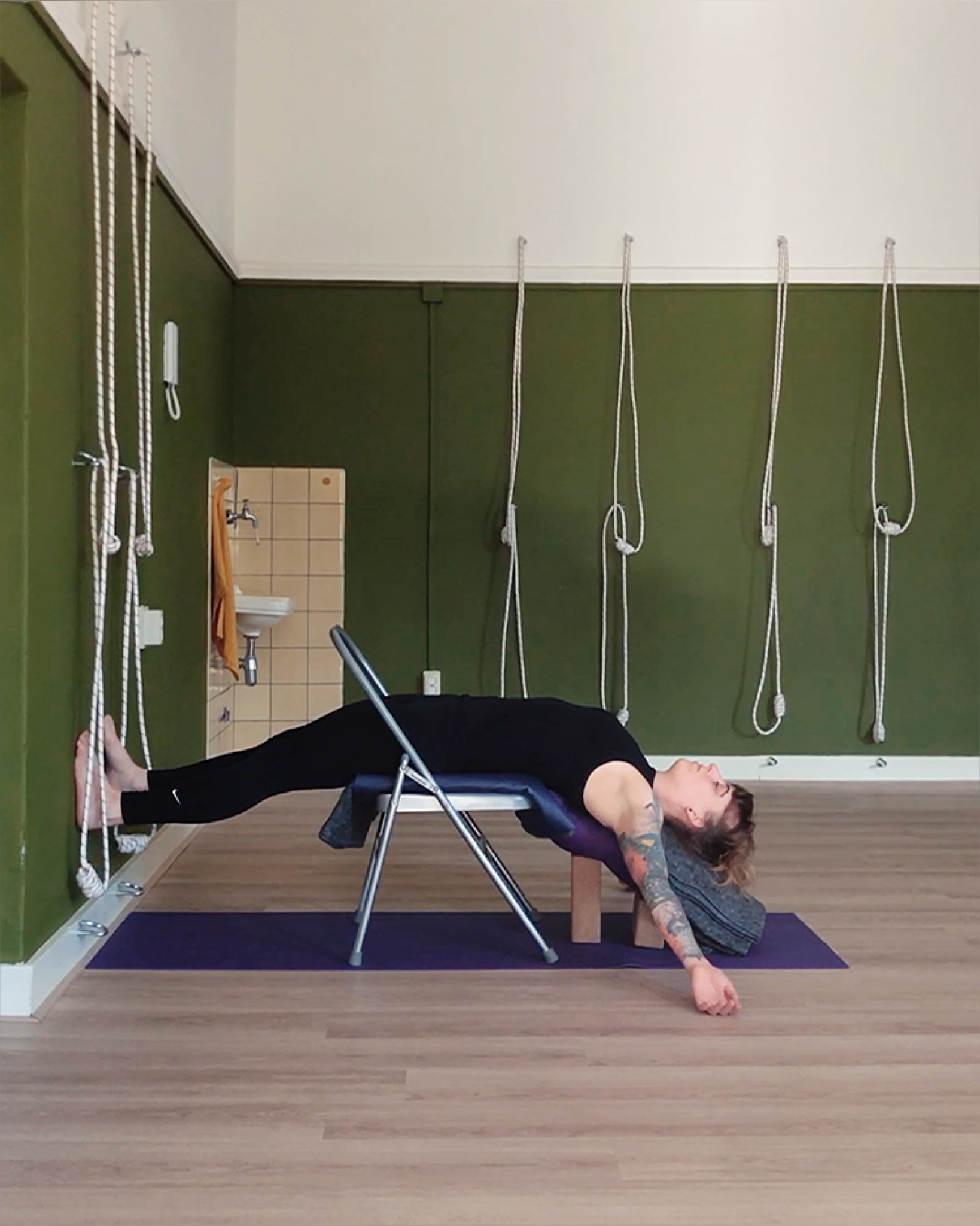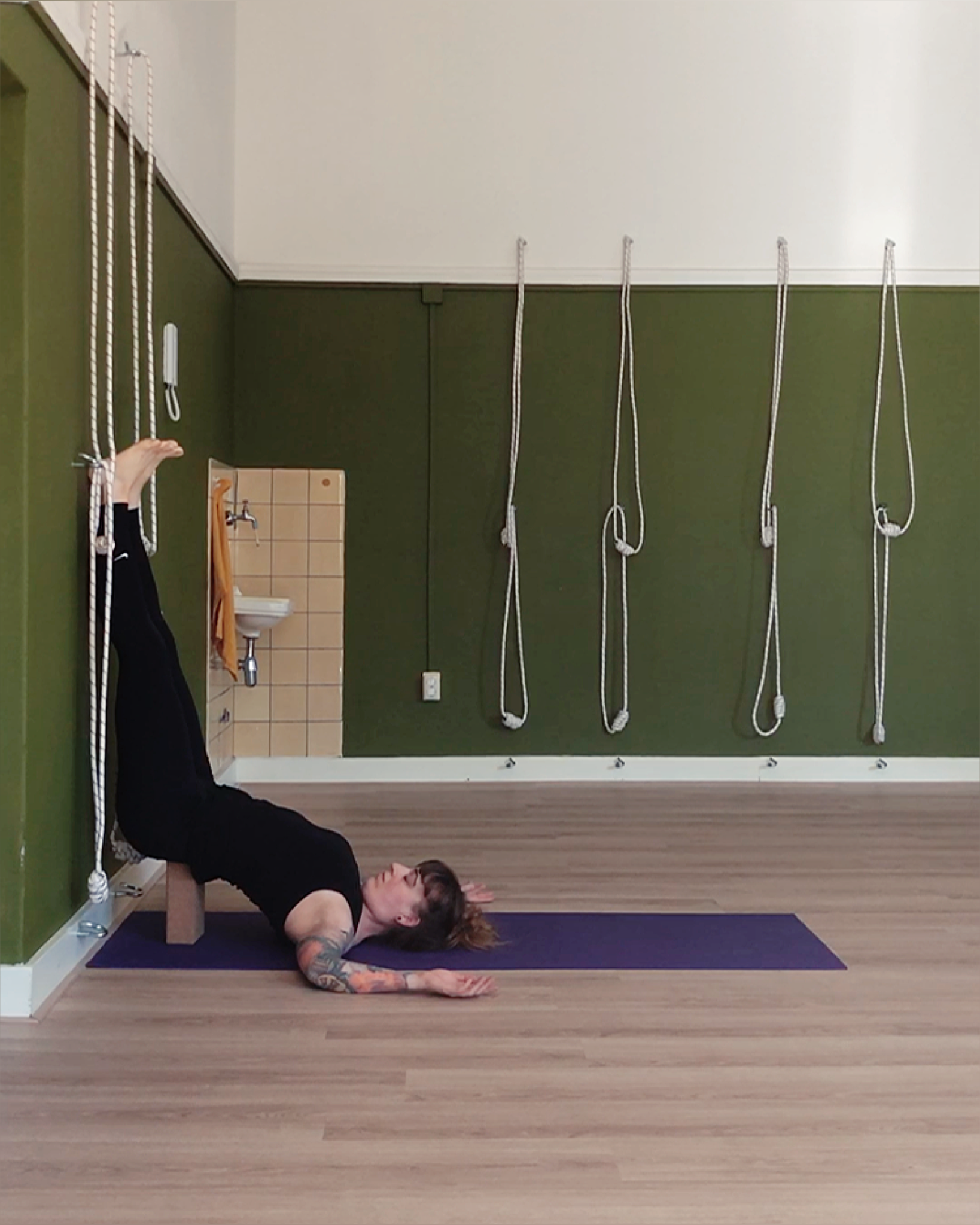 Foto waarop de houding : Bruggetje wordt gedaan voor een blogpost Klesha's van About Yoga Breda